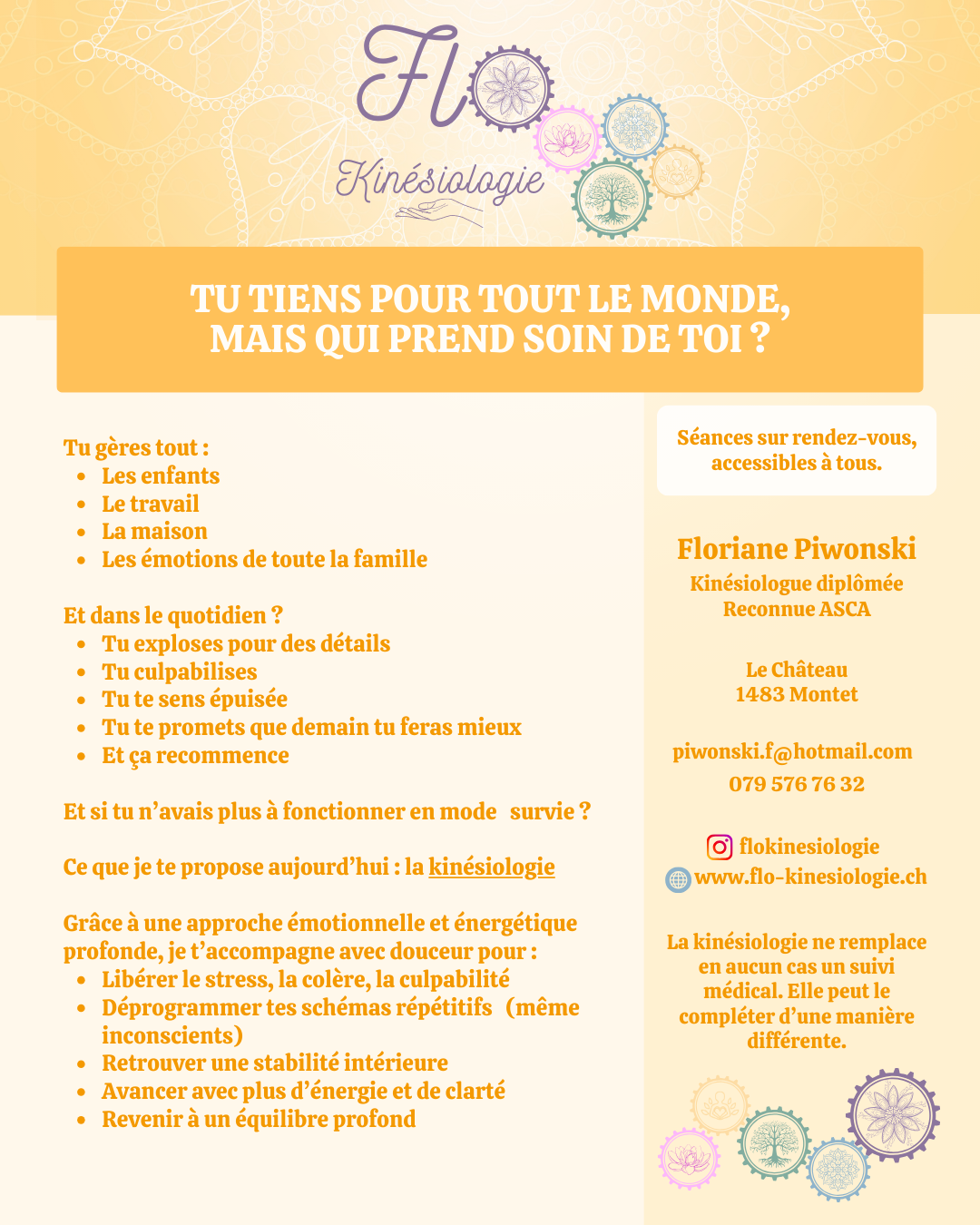 Je souhaite utiliser cette page pour écrire de petits articles, que je publie également sur les réseaux sociaux, afin de vous aider à mieux comprendre dans quel contexte la kinésiologie peut vous aider. L'inspiration me vient des séances que j'ai fait avec certains d'entre vous mais aussi de mon propre parcours.